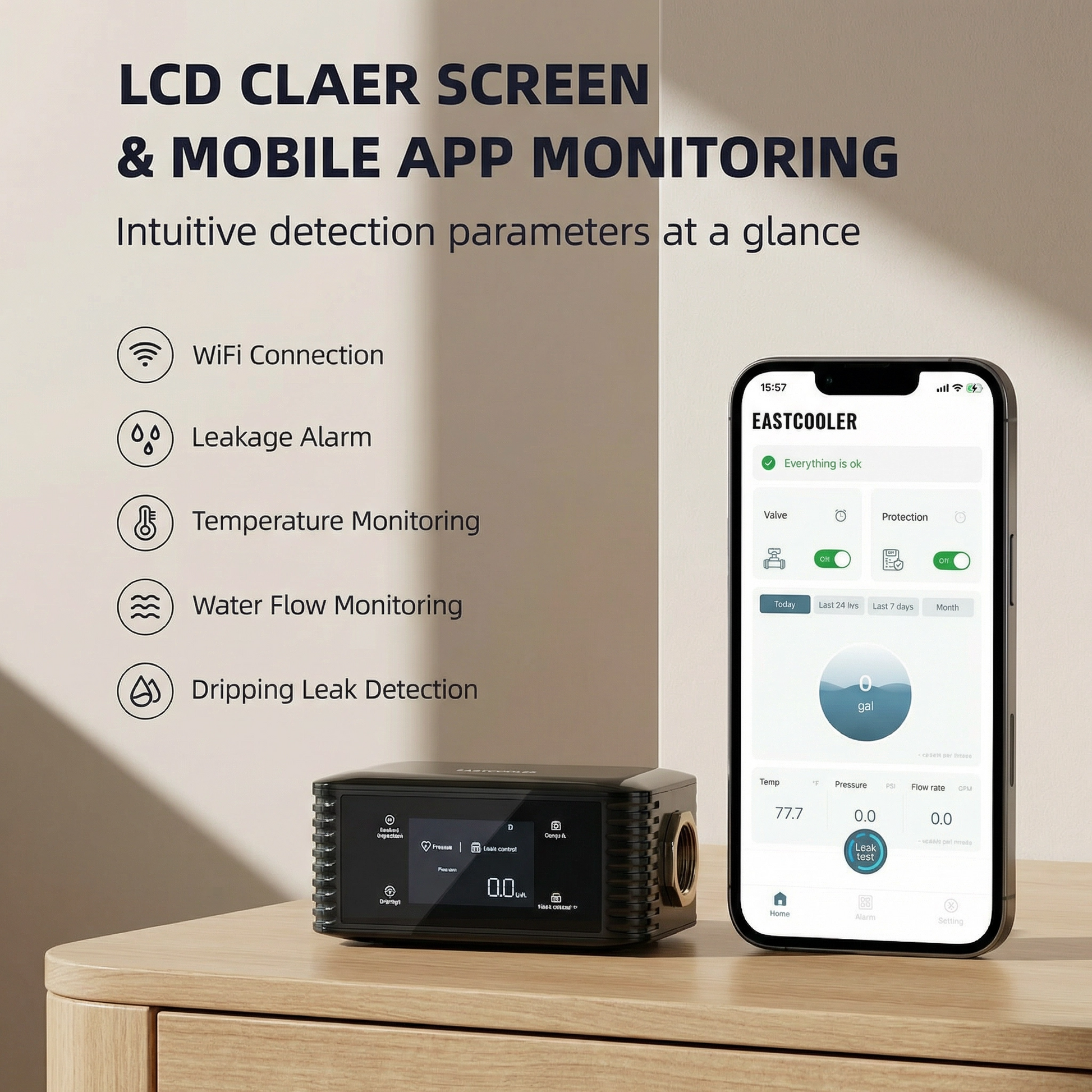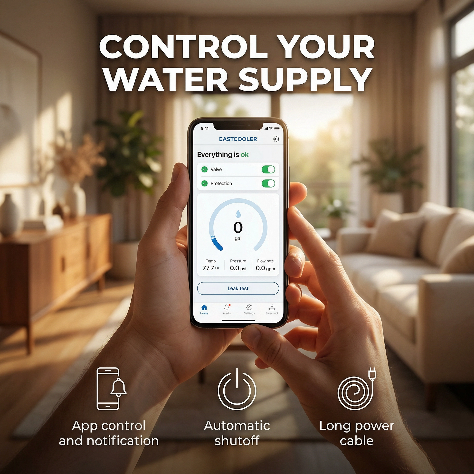 Controllo completo dal tuo telefono: Utilizzando l'app gratuita Smart Life (iOS) & Android, supporta la banda 2.4G & Grazie al Wi-Fi 5G, puoi monitorare in tempo reale il flusso d'acqua, la temperatura e il consumo da qualsiasi luogo. Apri o chiudi la valvola a distanza, che tu sia al lavoro, in vacanza o semplicemente al piano di sopra. Ricevi notifiche push, avvisi via SMS e persino chiamate telefoniche quando qualcosa richiede la tua attenzione.