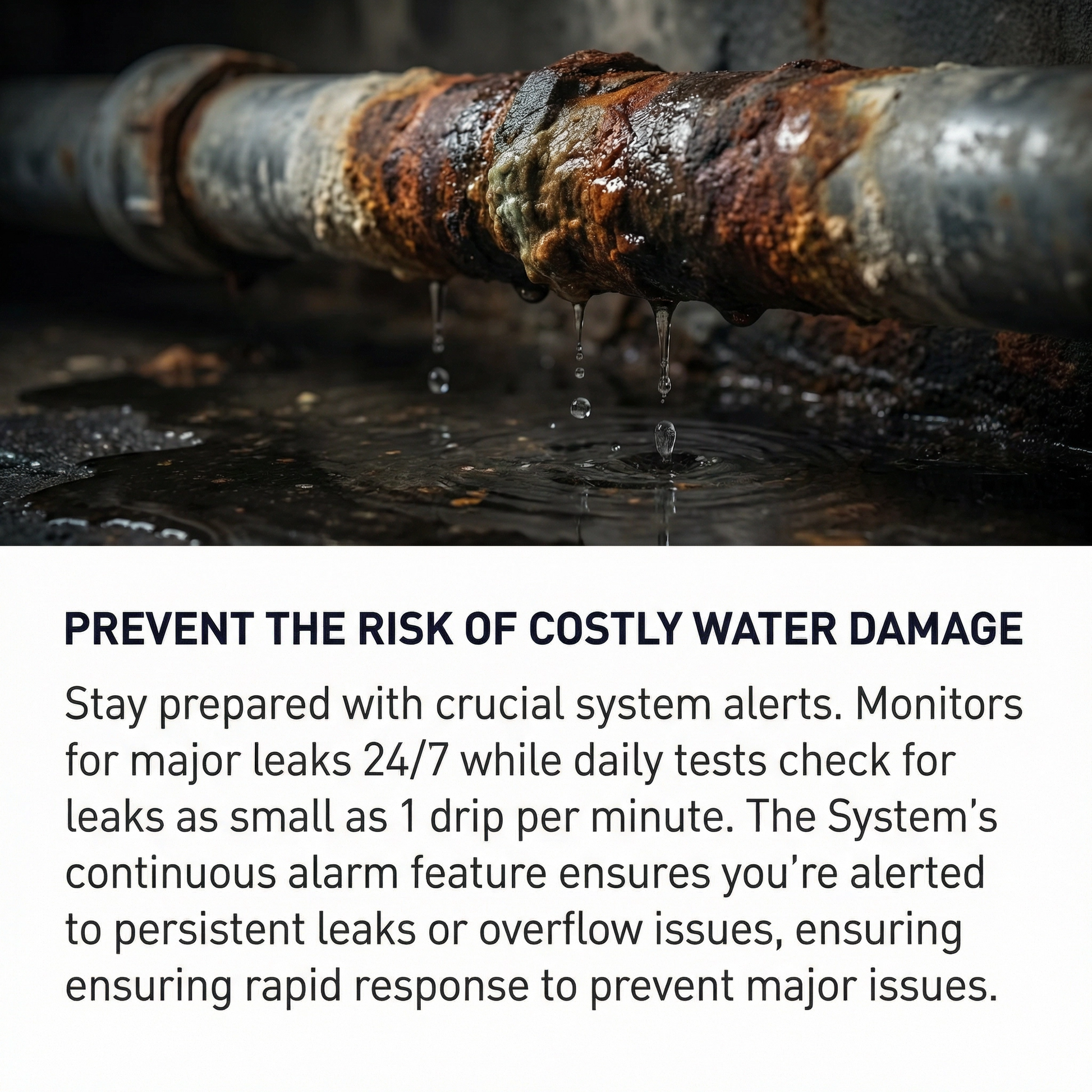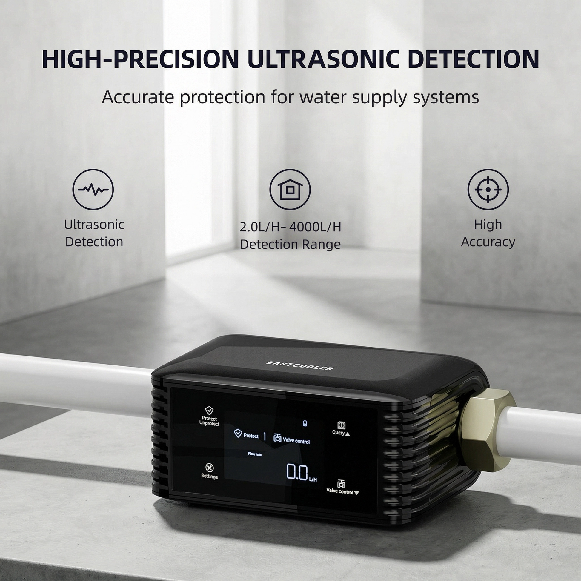Come funziona: Il sensore a ultrasuoni integrato monitora costantemente il flusso d'acqua con una precisione fino a 0,01 GPM, sufficientemente sensibile da rilevare gocciolamenti lenti, scarichi del WC che perdono e microperdite che i sistemi tradizionali non riescono a individuare. Quando viene rilevato un flusso anomalo, la valvola motorizzata interrompe l'erogazione dell'acqua in pochi secondi e invia un avviso immediato tramite l'app Smart Life.